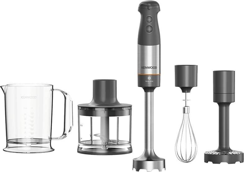 De Kenwood Triblade XL+ Hbm60.307Gy is een staafmixer met diverse accessoires en vermogen van 1.000 watt. Met deze staafmixer pureer je groenten tot soep, maar je gladde sauzen, klop je ingrediënten op en hak je noten of kruiden fijn met de hakmolen. Kortom: het is een zeer veelzijdig apparaat en een goede hulp bij wat je ook wilt koken. Dankzij de extra brede Triblade-voet werk je nog sneller en krijg je nog beter resultaat. Verder maak je zeer eenvoudig heerlijke aardappelpuree met de handige pureerstaaf: tot wel 2x sneller dan met de hand. Je stelt zeer precies de gewenste vermogensstand in met het draaimechanisme, of je gebruikt de turbotoets.