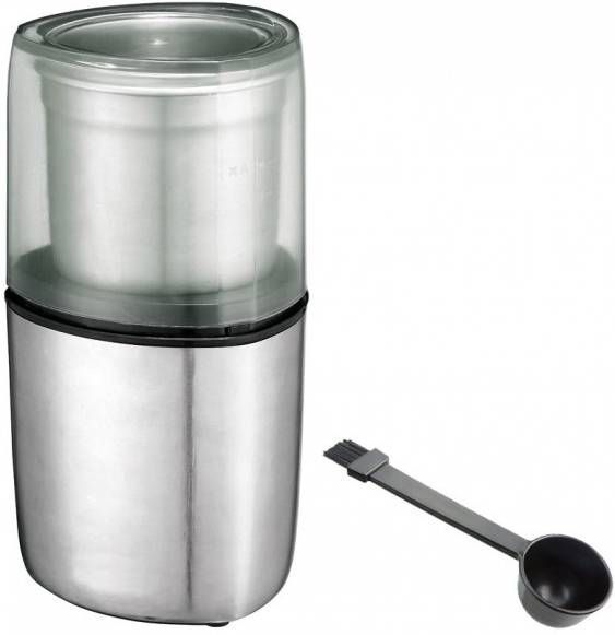 Dit krijg je erbij: Hakmolen, RVS-container met 4-bladsmes, RVS-container met 2-bladsmes, deksel met kijkvenster, 2-in-1 lepel en borstel 3.