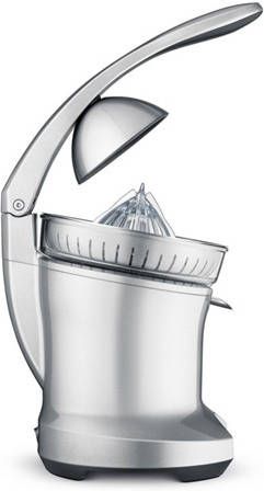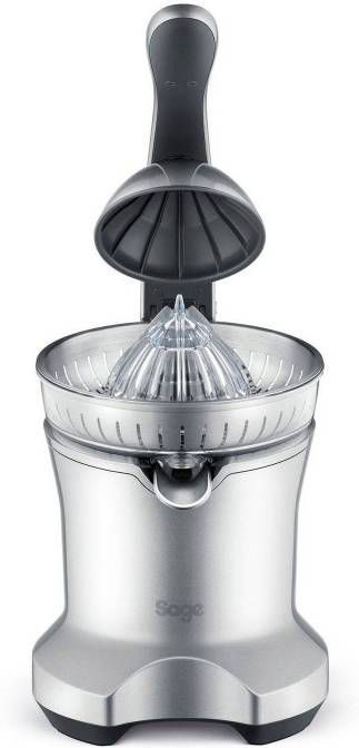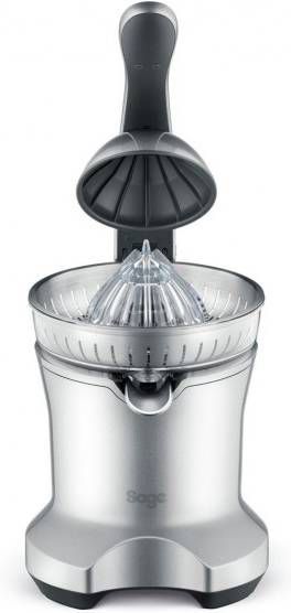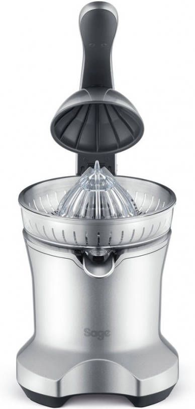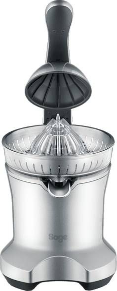 Met de elektrische citruspers van Sage heb je supersnel een glas verse jus d'orange. De hendel perst iedere helft van de citrusvrucht in een paar seconden helemaal uit en het fruitsap komt meteen in het glas terecht. De groeven van de pers zijn zo gemaakt dat het apparaat voor zowel grotere als kleinere citrusvruchten geschikt is.