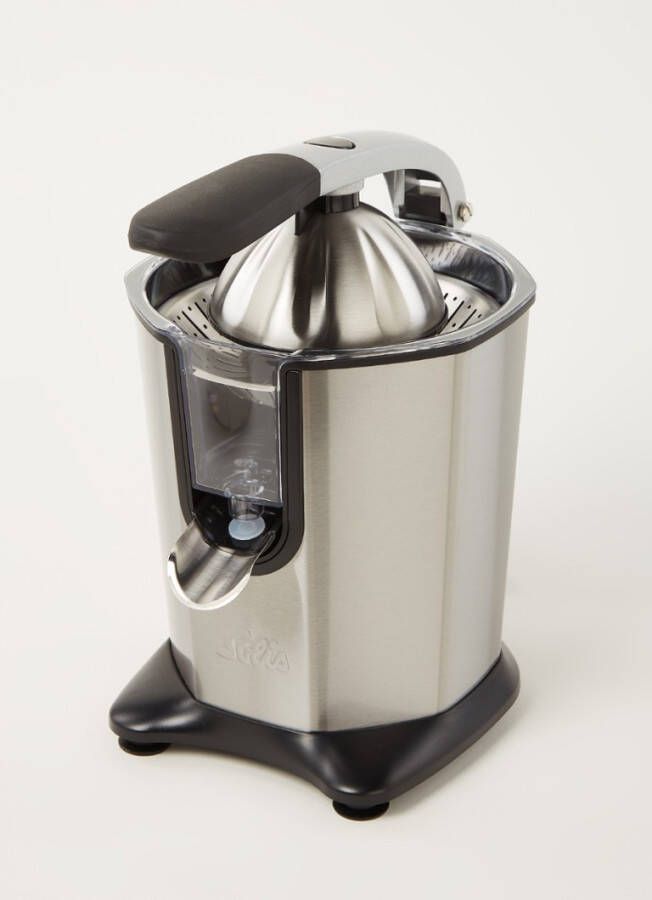 De elektrische citruspers van Solis voorziet je supersnel van een glas verse jus d'orange. De hendel perst iedere helft van de citrusvrucht in een paar seconden helemaal uit en het fruitsap komt meteen in het glas terecht. De groeven van de pers zijn zo gemaakt dat het apparaat voor zowel grotere als kleinere citrusvruchten geschikt is.